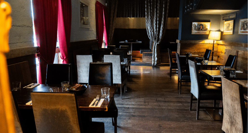 Step into a space Hugo would adore, featuring plush velvet booths, glittering chandeliers, and luxurious curtains. Ideal for large group dining or decadent celebrations.