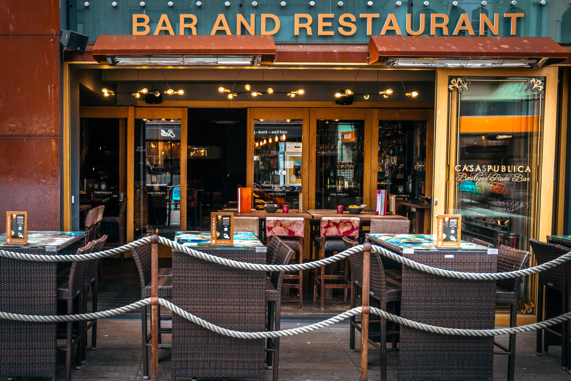 Start at street level in Hugo’s Rum Lounge, where rustic wooden leaners, warm timber tones and a wall of fine rums. The space opens directly onto vibrant New Regent Street, bringing together a relaxed atmosphere with the city buzz.
