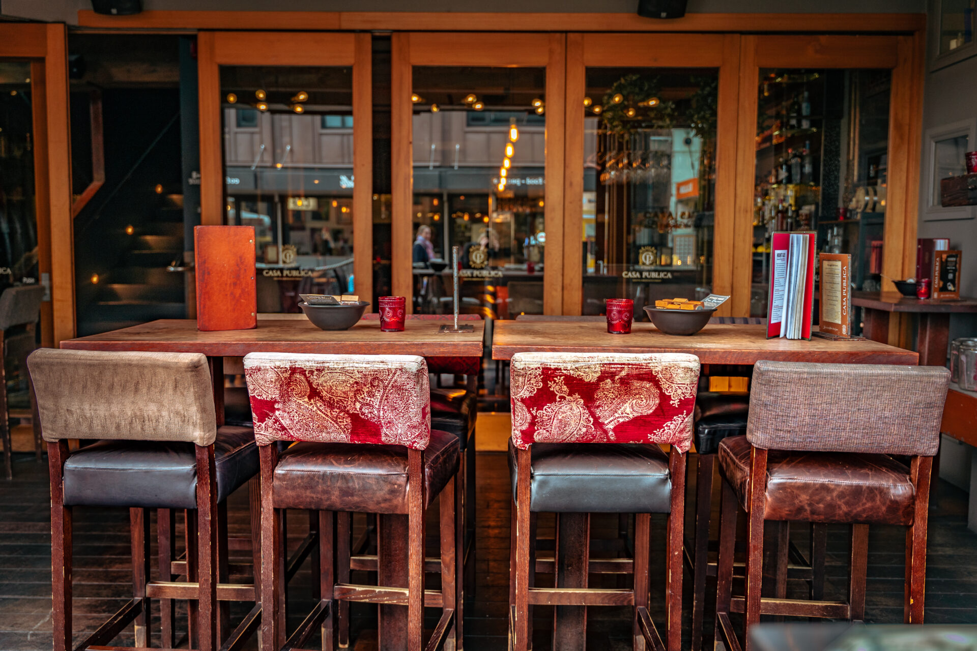 Upstairs, the Colombian Lounge offers a rich, opulent escape – complete with plush velvet booths, luxurious curtains and sparkling chandeliers. Paired with the covered Terrace overlooking the street below, it’s an entertainer’s dream.